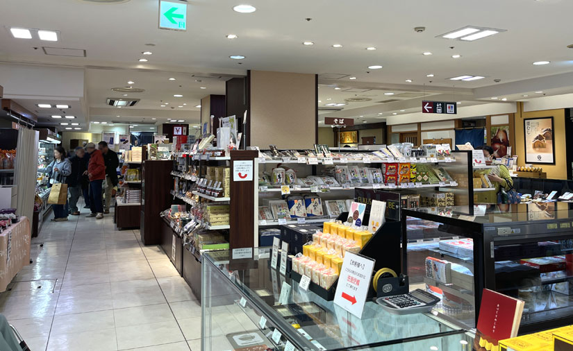 長野県の名店のお菓子や食品が並ぶ「信州名産品」売場の人気商品も教えていただきました。ちなみに行列ができていたのは「そば処やぶ」。