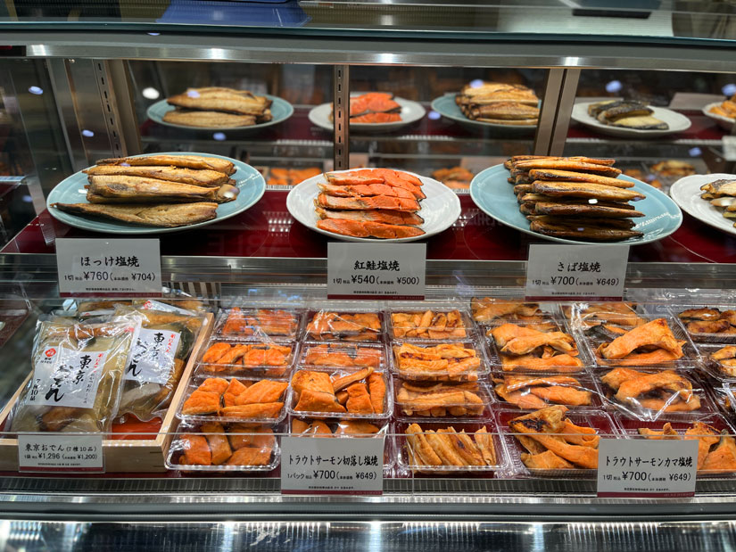 お得な商品も!画像は、取材時に並んでいた「銀だら粕漬」と「サーモントラウト粕漬」。