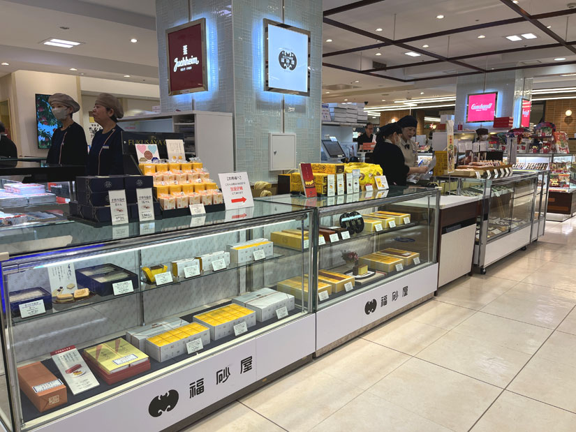 今年オープンした長崎カステラ本家「福砂屋」も新たな売場に。 伝統の古法を家伝継承する1624年創業のカステラの老舗。