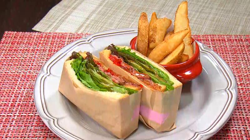 肉と野菜たっぷりの自家製パンサンドイッチ