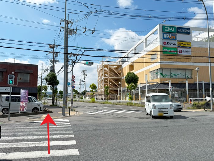 「アル・プラザ城陽」の方へ進み、横断歩道を渡って西へ。
