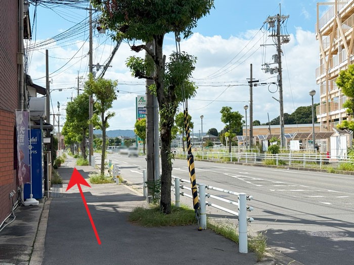 JR「長池駅」西出口から奈良街道の方へ進み、丁字路を右折(奈良街道へ)。