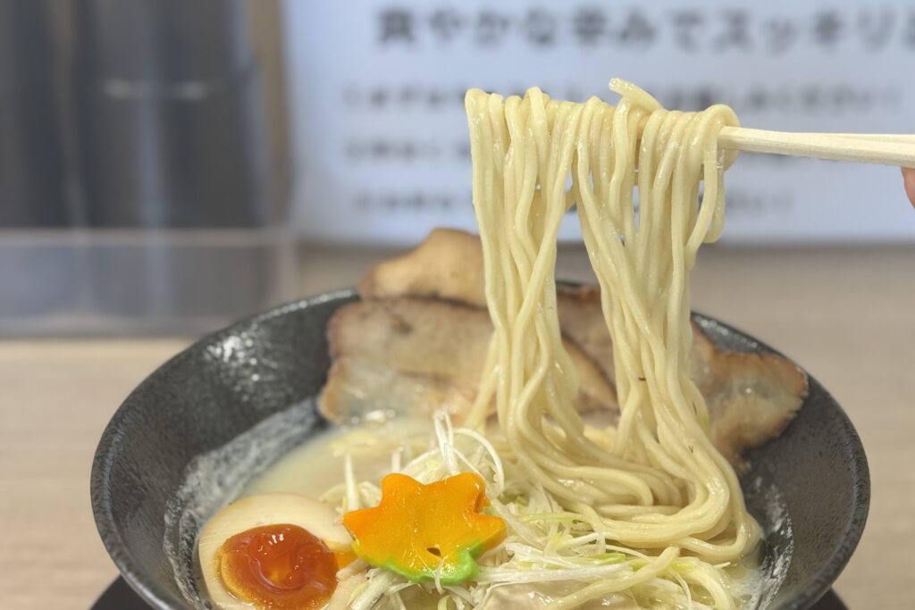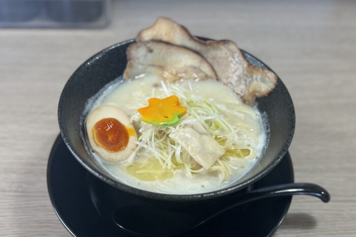 生麩や湯葉が乗った京都らしさを感じられる一杯。チャーシューは香ばしく炙られており、ほのかな甘みと優しさを感じられるスープとの相性は抜群。