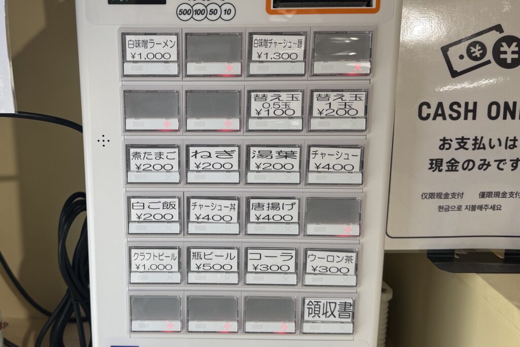 食券制です。今後は白味噌ラーメン以外のメニューも登場予定です。