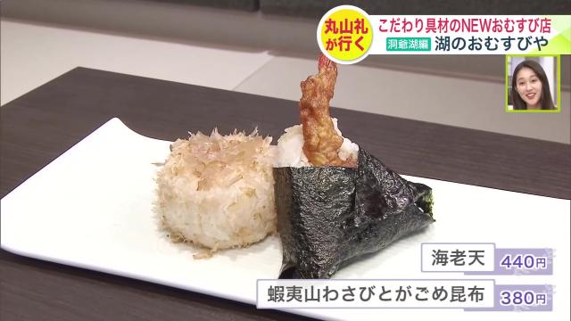 『蝦夷山わさびとがごめ昆布 380円(税込)』や、おいしいタレが染み込んだ『海老天 440円』など、食欲をそそるおむすびが味わえますよ。