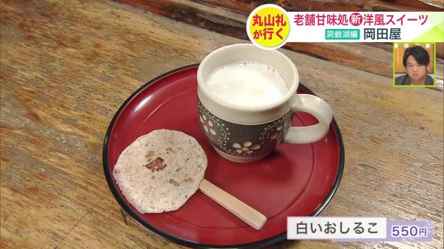 名物の『白いおしるこ 550円(税込)』は、洞爺湖周辺の特産品、インゲン豆の一種である大福豆を使用した一杯。