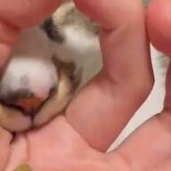 さしみちゃんがなぜお風呂にいるのか、それはシャンプーではなく、お風呂のフタの上で温まっていたからでしょう。お湯を張った湯船のフタの上に乗り、その上からタオルをかけてもらうこともあったようです。お風呂から出るときに体を拭くためのタオルを取ろうとする人間の動きにも見えますね。必死な顔も可愛いさしみちゃんでした。