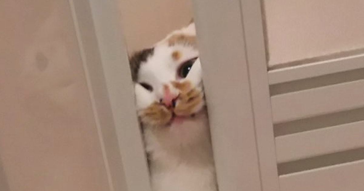謎すぎる!ドアの隙間から出てきた前足の正体