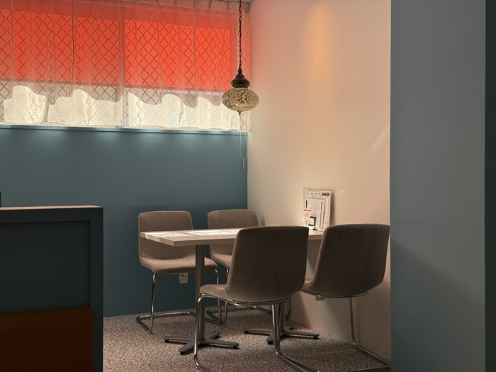 (左の)オレンジの扉の向こうは、喫煙ルームになっています。