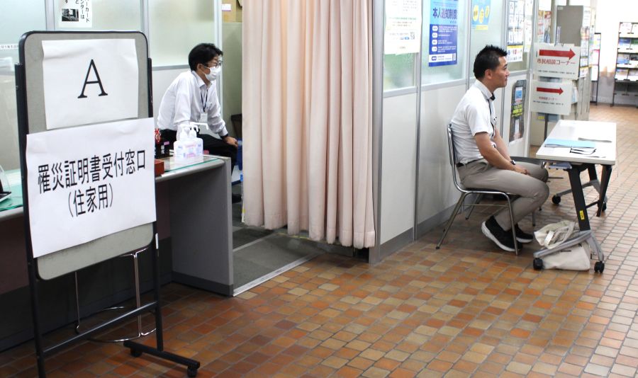 罹災証明書と被災届出証明書の受付窓口は、市役所本庁舎の1階東側や各地区市民センターに出来た。初日は正午ごろまでに、それぞれ33件、39件の受付件数があったという。