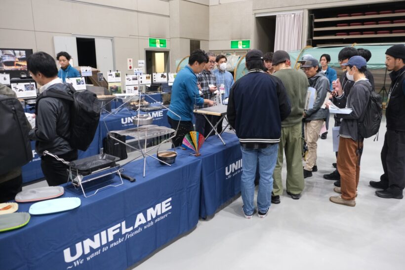会場には燕三条地域の企業を中心に県内20社が出展し、会場の各社ブースにはグリルやアウトドア向けのカトラリーから、テントやキャンピングカーまで、様々な製品がずらりと並んだ。事前申し込みの時点で全国70社ほどが参加する予定で、来場者数は2日間で250人ほどを見込む。