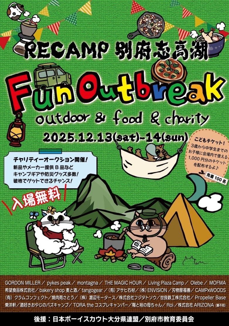 「アウトドア×フード×チャリティ」を組み合わせた地域型イベント「Fun Outbreak Lv.3」!犬猫支援・こども支援・就労支援をアウトドア文化とつなぐ、新しい地域活性モデルとして 3回目の開催!