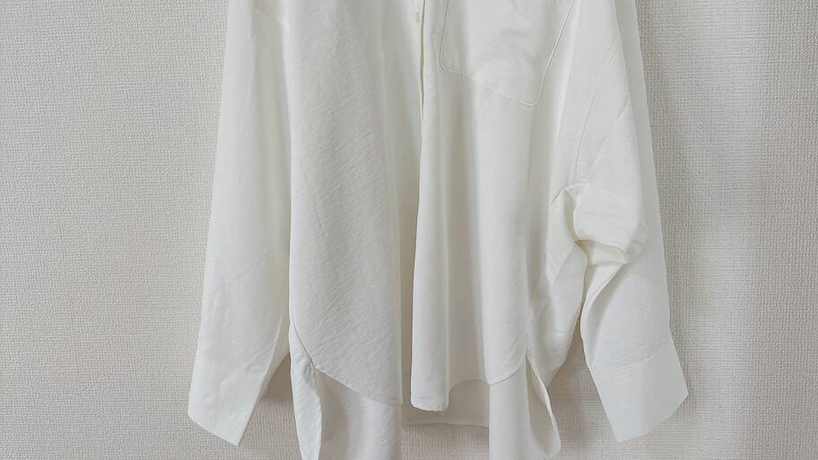 ウエスト部分にシャツを巻いたようなデザインになっていて、シンプルなトップスやジャケットスタイルにもマッチするスカートです。