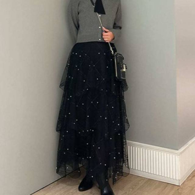 初秋から使える華やかなスカートを探している方におすすめの、CELFORDの「パールスカート」。