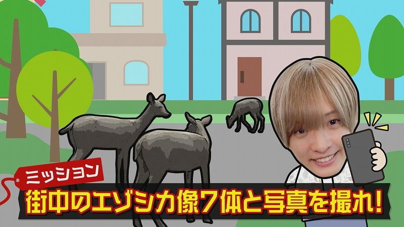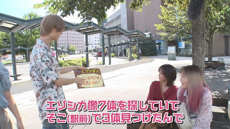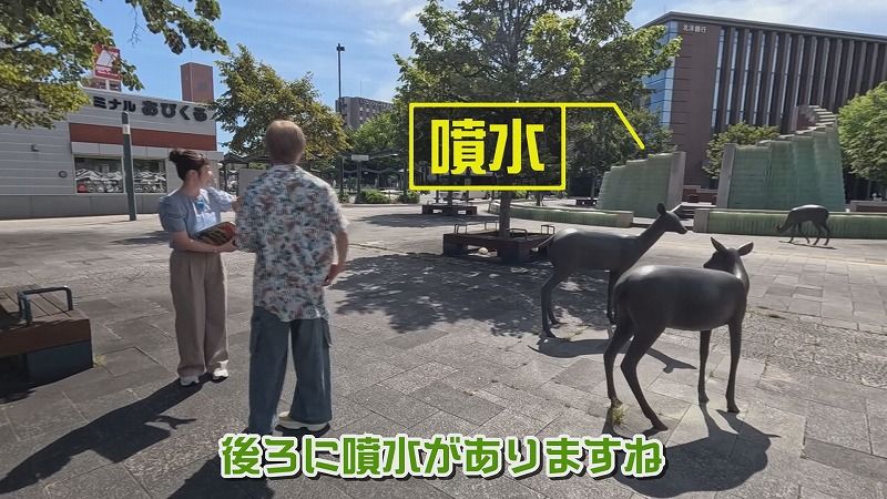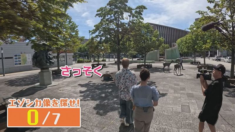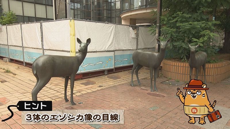 新くん:「こんにちは。エゾシカ像7体を探していてそこ(駅前)で3体見つけたんで、後4体見つけなきゃいけないんですけど、残りのエゾシカ像がどこにいるか分かる?」