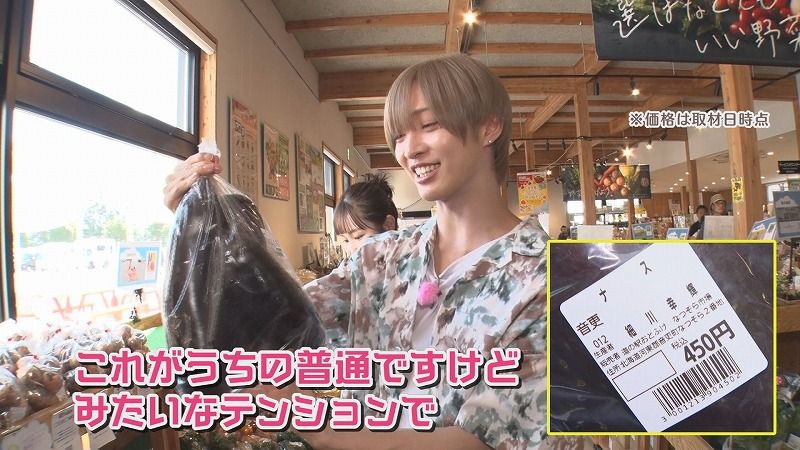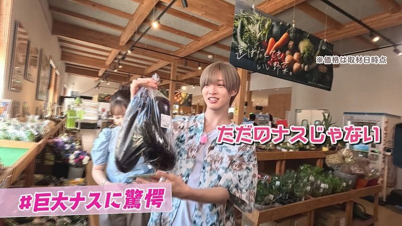 新くん:「これがうちの普通ですけどみたいな感じで“ナス”って表記されてるけど、僕の知ってるナスの3倍ある。ナスってこんなにでかいの?」