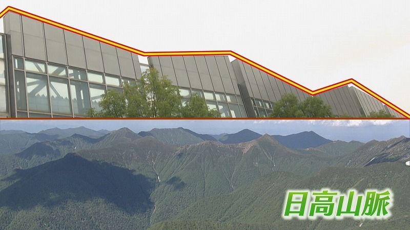 例えば、帯広駅の屋根を見てみると、ギザギザした形は十勝にもかかる日高山脈をイメージしているんだ。