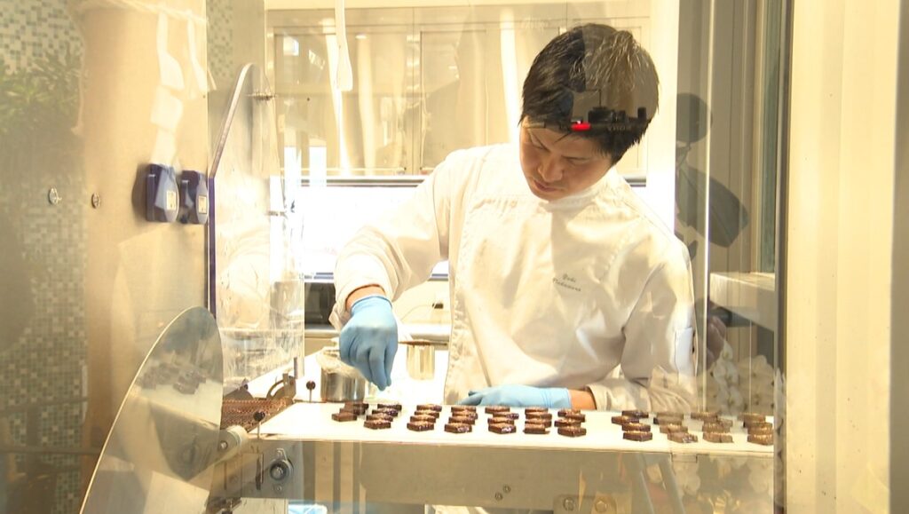 ガラス越しに、ショコラティエが腕を振る様子を見学することもできます!