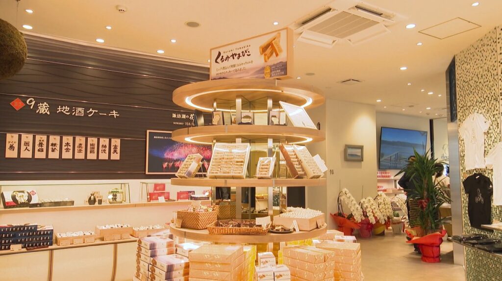 今年7月、長野道・岡谷インターと中央道・諏訪インターの間に「諏訪湖スマートインターチェンジ」が開業しました。高速道を降りて3分ほどで、諏訪湖畔へ! これに合わせて、諏訪観光の新たな玄関口として、銘菓「くるみやまびこ」で知られるヌーベル梅林堂が手がけたのが、この『諏訪湖テラス』です。1階では、そのお菓子や地元の名産品を販売、足湯やダイニングカフェもあります。