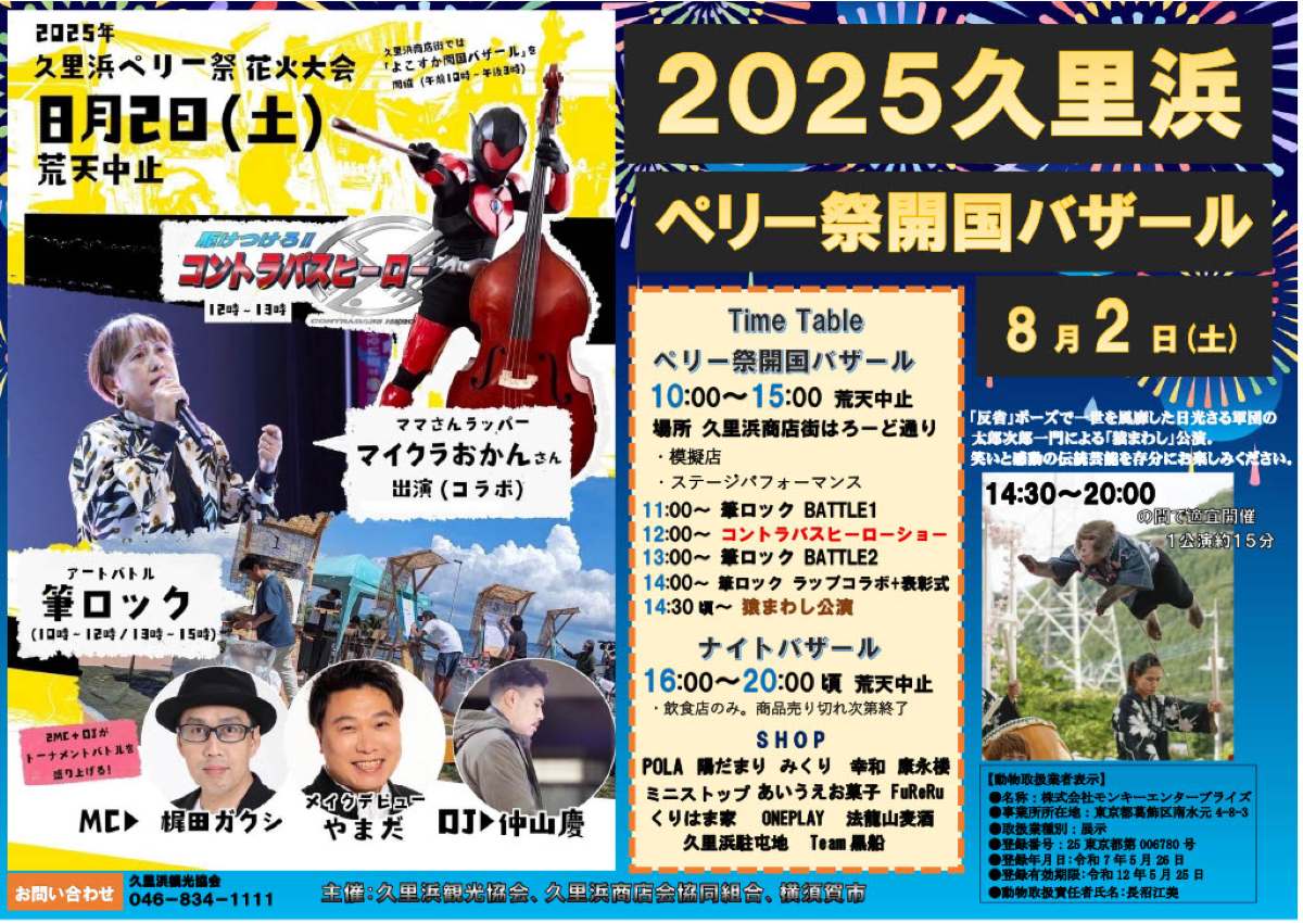 横須賀の夏を象徴する「久里浜ペリー祭花火大会」。日中のお祭りから夜空を彩る壮大な花火まで、見どころ満載の一日です。大変な混雑が予想されますので、公共交通機関を利用し、時間に余裕をもってお出かけください。ぜひ、夏の素敵な思い出を作りに、久里浜へ足を運んでみてはいかがでしょうか。
