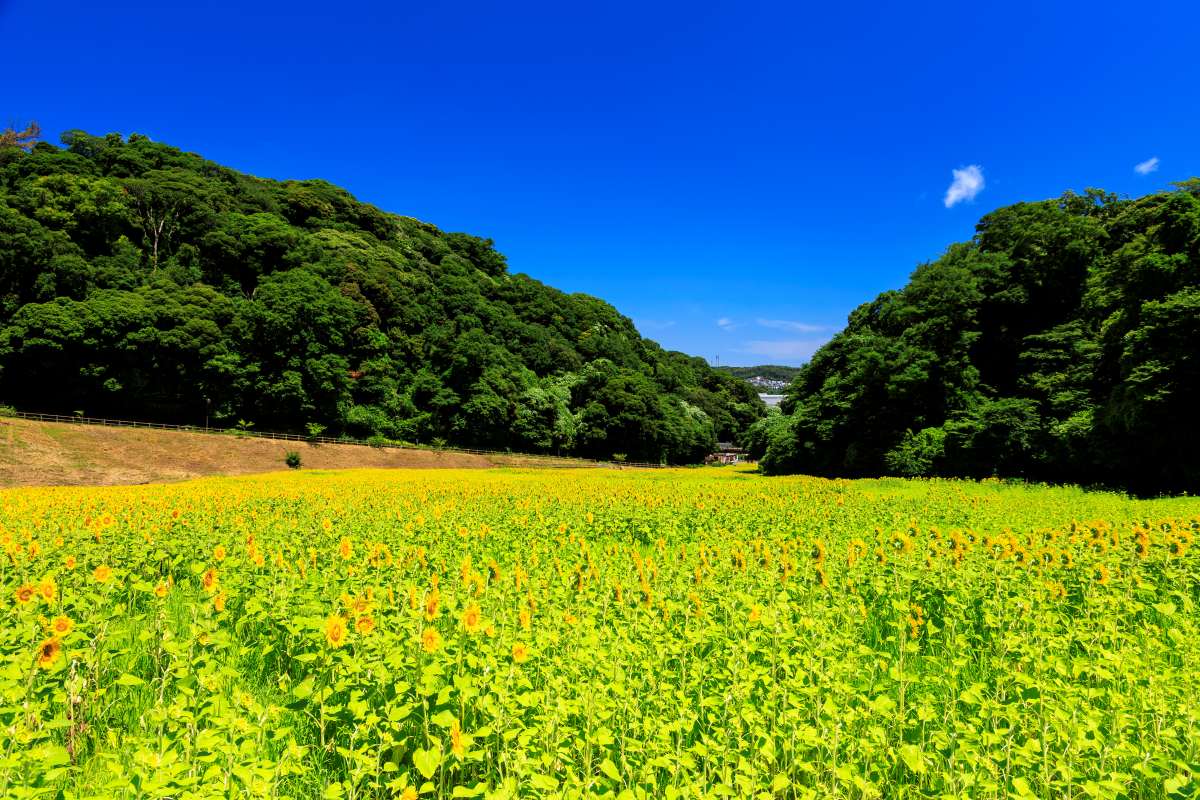 「くりはま花の国」の駐車場のすぐ隣にある公園です。こちらも少し高台になっており、花火を鑑賞することができます。ただし、「くりはま花の国」よりは標高が低いため、低い花火は見えない可能性が高いです。