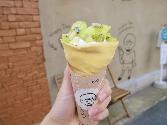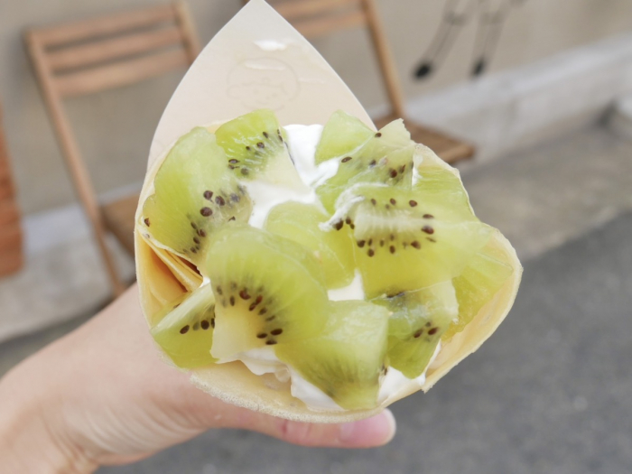続いて、みずみずしいキウイをたっぷりトッピングした「もとくんのキウイクレープ」。