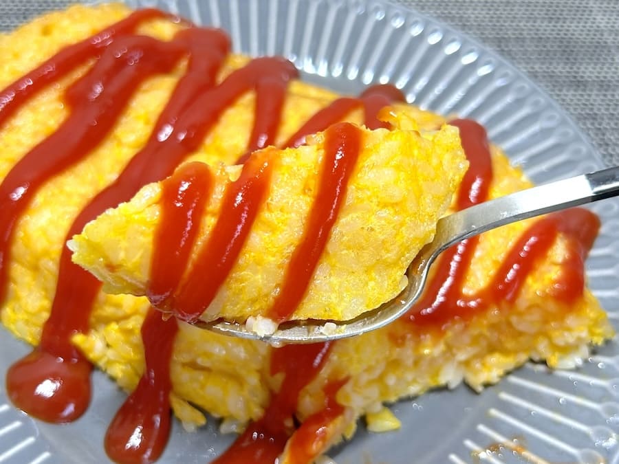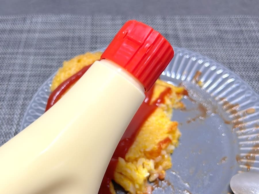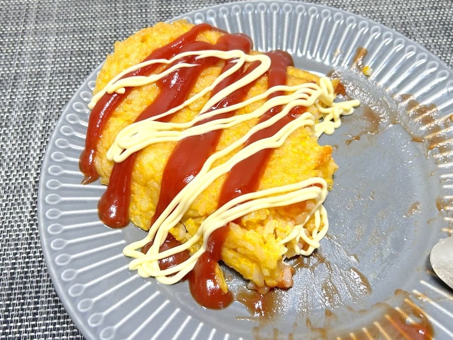 またマヨネーズを追加して食べるのもよいとのこと。試してみると、マヨが加わることでコクと卵感がアップ。より食べやすくて満足感のあるオムライスになりました。