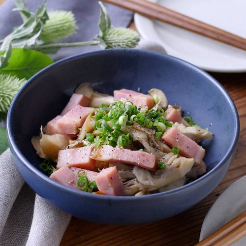 レンジでパパッと 舞茸とベーコンのガリバタ醤油