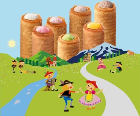 1962年に千鳥屋が発売した「チロリアン」は、オーストリアのチロル州に古くから伝わる伝統的なレシピで焼き上げたロールクッキーに、独自のクリームを詰めることで親しまれてきました。福岡の土産菓子として、また家庭のお菓子として、幅広い世代に支持されています。