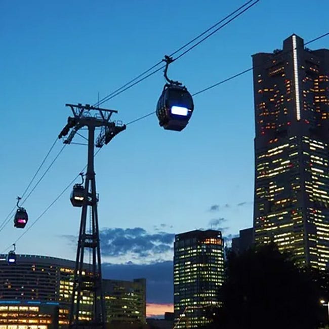 みなとみらいの夜景とキャビンのライトアップでドラマティックに。冬のロープウェイデート