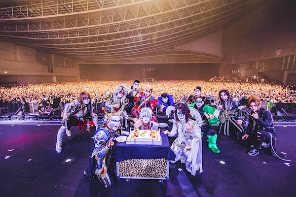 黒ミサも終盤戦に差し掛かったところで、会場に突如バースデームードが訪れる。「お前も蝋人形にしてやろうか。お前の誕生日を祝ってやろうか!」とデーモン閣下が不穏かつ楽しげに煽ると、会場にはお馴染みのフレーズに沸く信者たちの歓声が響き渡る。来週11月21日には、構成員・ライデン湯澤殿下(D)の発生日(誕生日)が控えており、そのお祝いとしてステージ上には巨大なケーキが登場。客席からは自然発生的に拍手が巻き起こり、祝福と笑いが入り混じった温かい空気に包まれる。その流れから『蝋人形の館』へとなだれ込むと、イントロが鳴り響いた瞬間、会場のボルテージは最高潮に。サビではお決まりの蝋人形コールが起こり、地鳴りのような大合唱が幕張メッセを揺らした。