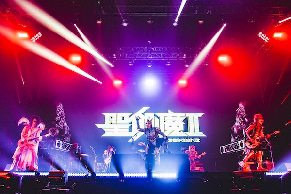 1日目となる15日の大トリに聖飢魔IIが降臨。氣志團万博の1日目を締めくくるにふさわしい、圧倒的な歌唱と演奏で、幕張メッセを完全制圧する黒ミサを執り行った。本記事では、その一部始終をレポートする。
