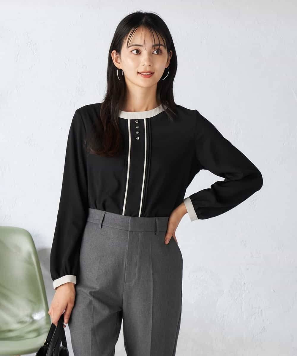 バイカラーのシンプル&上品なブラウストップスは、大人女子におすすめしたいハイセンスなアイテム。