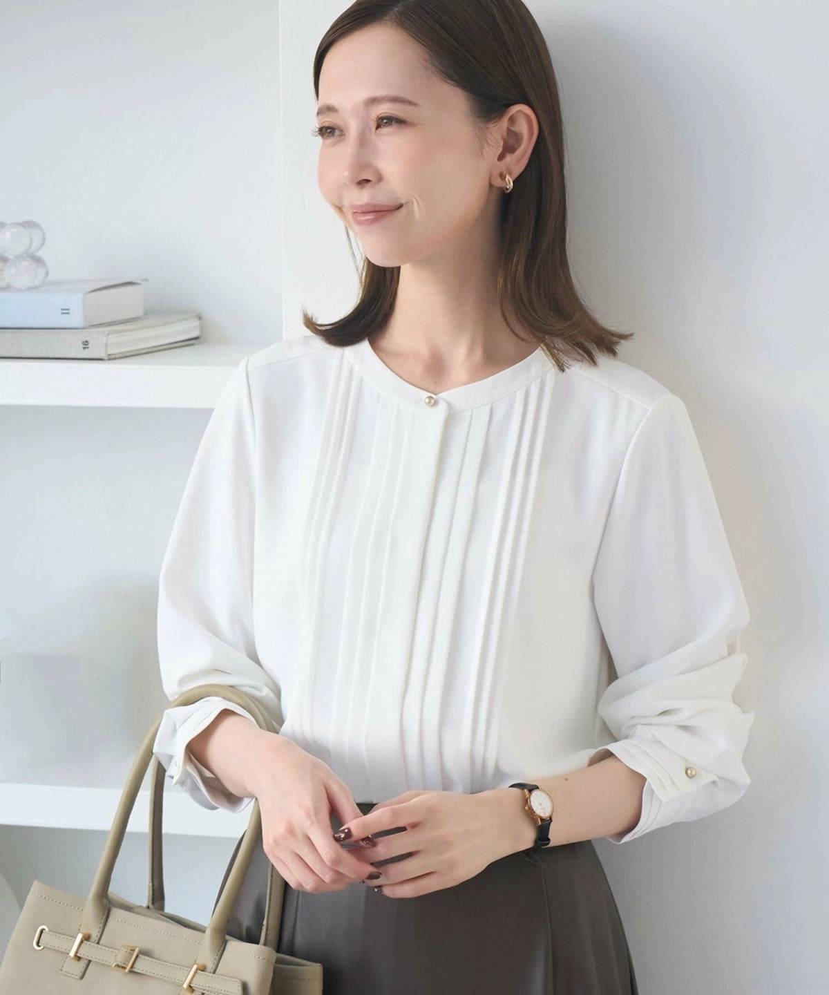 ピンタックデザインの上品かつシンプルなブラウストップスは、大人女子にぴったりのアイテム♪