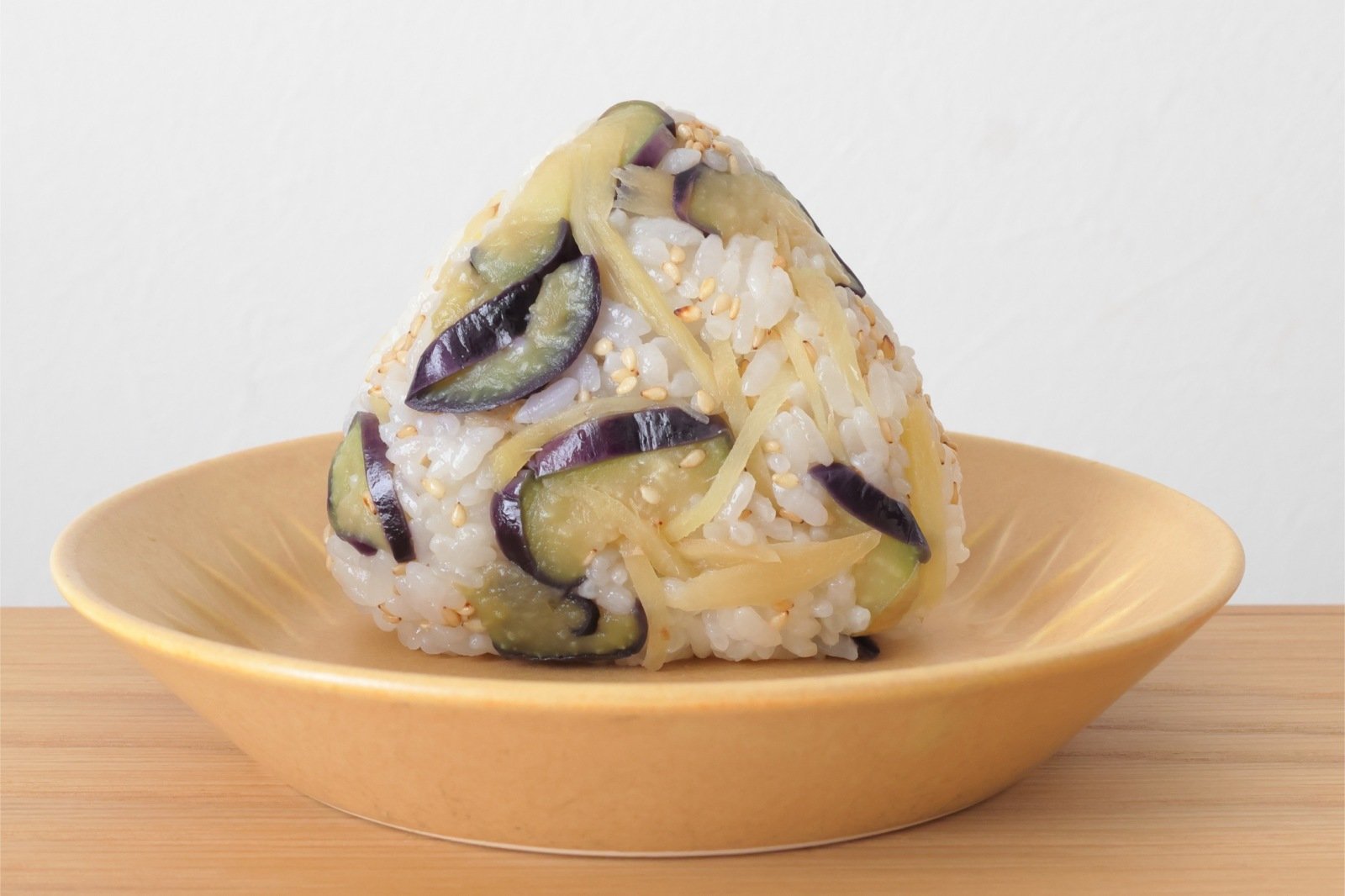 なすで作るのは、「おにぎり」です。意外とボリューム感のあるなすは、おにぎりの具にぴったりな食材。「しょうが」を加えて、大人も大満足の味に仕上げていきます。