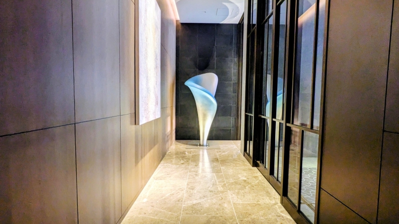 エントランスにあるオブジェは、北海道の大地に咲く一輪の花をイメージしたものなのだそう。何かが始まるような、ドラマティックな雰囲気が印象的です。こうした館内のアートワークひとつひとつに込められた作り手の思いや、さりげないおもてなしの心が感じられ、満たされた気持ちになれました。