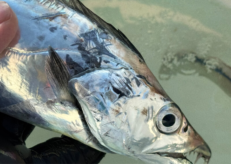 タチウオは元来、食うのが下手な魚なのではないでしょうか? 下手といえば語弊がありますが、ある一定の条件下では高確率で捕食できても、ジグのように複雑な動きへの対応は不得手であり、どうしても食べ損なうことが多くなるのではないかと思われます。