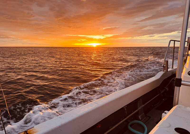 最近の傾向は朝の時合にバイトが集中しているそうです。このチャンスを逃すと厳しいとのこと。気合い十分でスタートから臨みましたが、肝心のアタリがありません…。そして、やや明るさが増した7時ごろに待望のアタリがありました! 間違いなくタチウオの引きです。