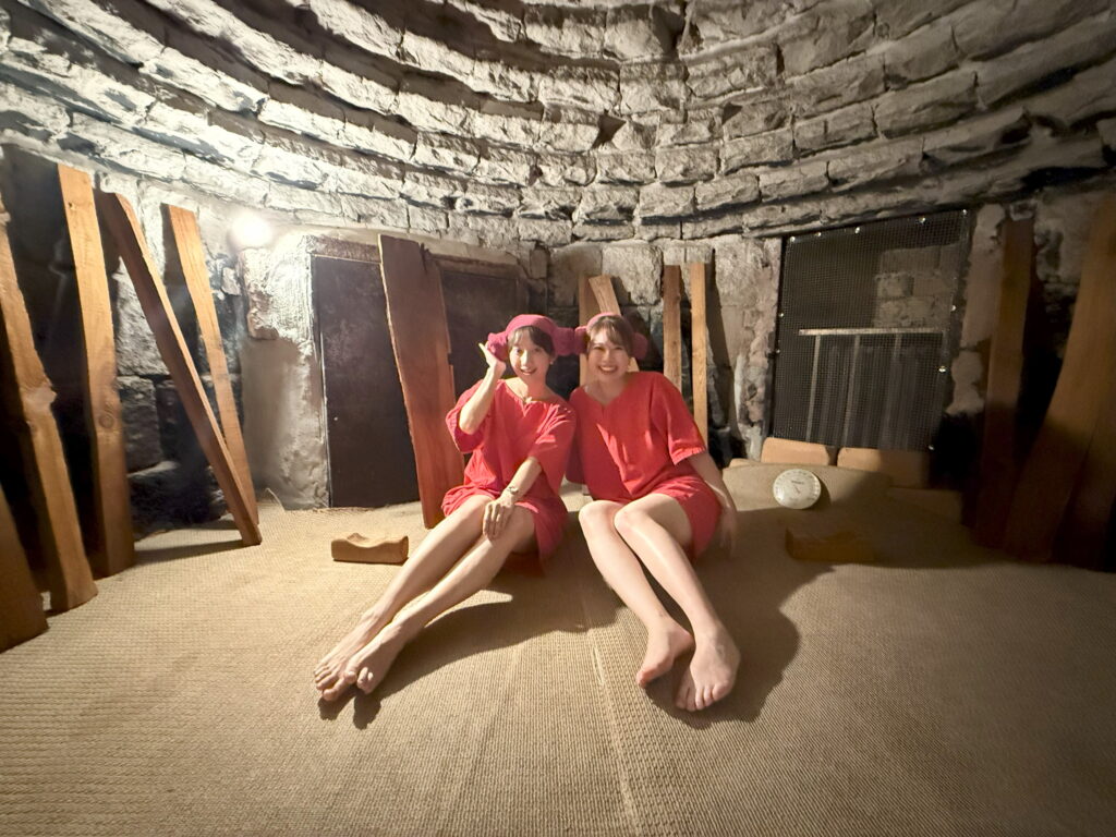 まず体験したのは、韓国伝統のサウナ「汗蒸幕」。