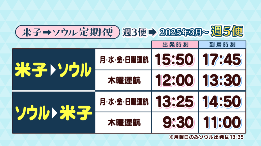 2025年3月から、鳥取県境港市の「米子鬼太郎空港」と、韓国「仁川国際空港」をつなぐ直行便の運航が週3便から週5便に増加!