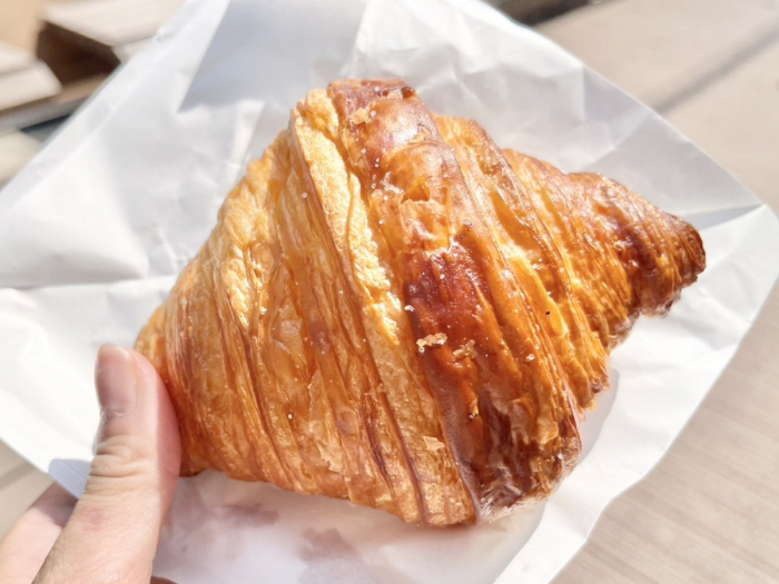 ショーケースに並ぶクロワッサンの数々はどれも美しく、見ているだけで心がときめきます。気づけば「これも、あれも…」と注文してしまう魅力が、そこにはあります。