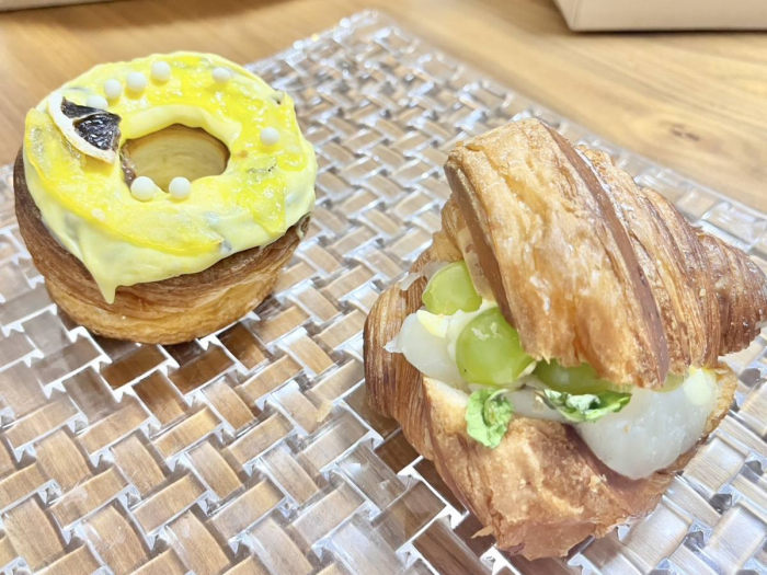 夏季限定メニューは、旬の素材をふんだんに取り入れた、爽やかな味わいが特徴。レモンやシャインマスカットといった果物を使ったクロワッサンは、思わず写真に撮りたくなるような可愛らしいビジュアルで、ショーケースの中でもひときわ目を引きます。