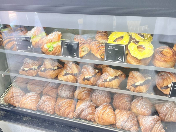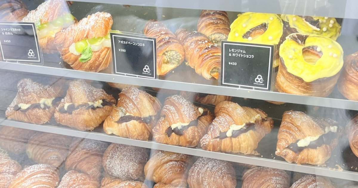 まるでジュエリーのように美しいクロワッサンが、ガラス越しのショーケースにずらりと並んでいて、思わず足を止めてしまいます。同店のクロワッサンは、その可愛らしい見た目と、上品で計算された味わいで、手土産や差し入れにもぴったり!