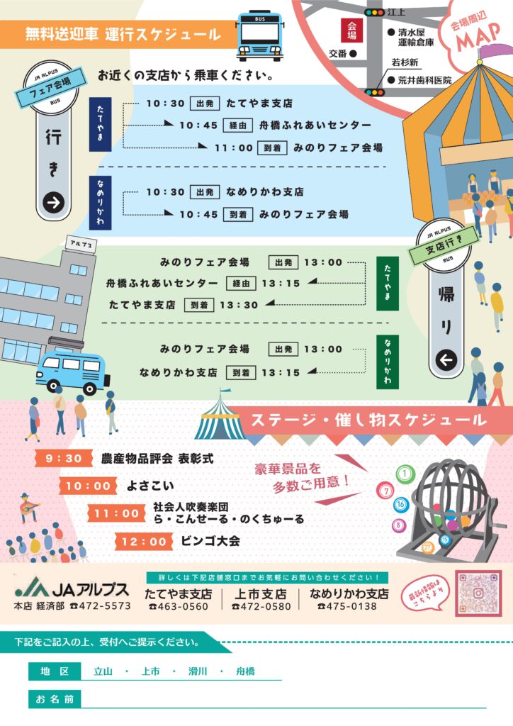 JAアルプス たてやま支店・なめりかわ支店から、無料での送迎車もあります。
