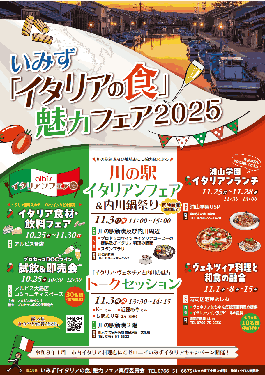 11/3 川の駅イタリアンフェア&内川鍋祭り【射水市新湊エリア】