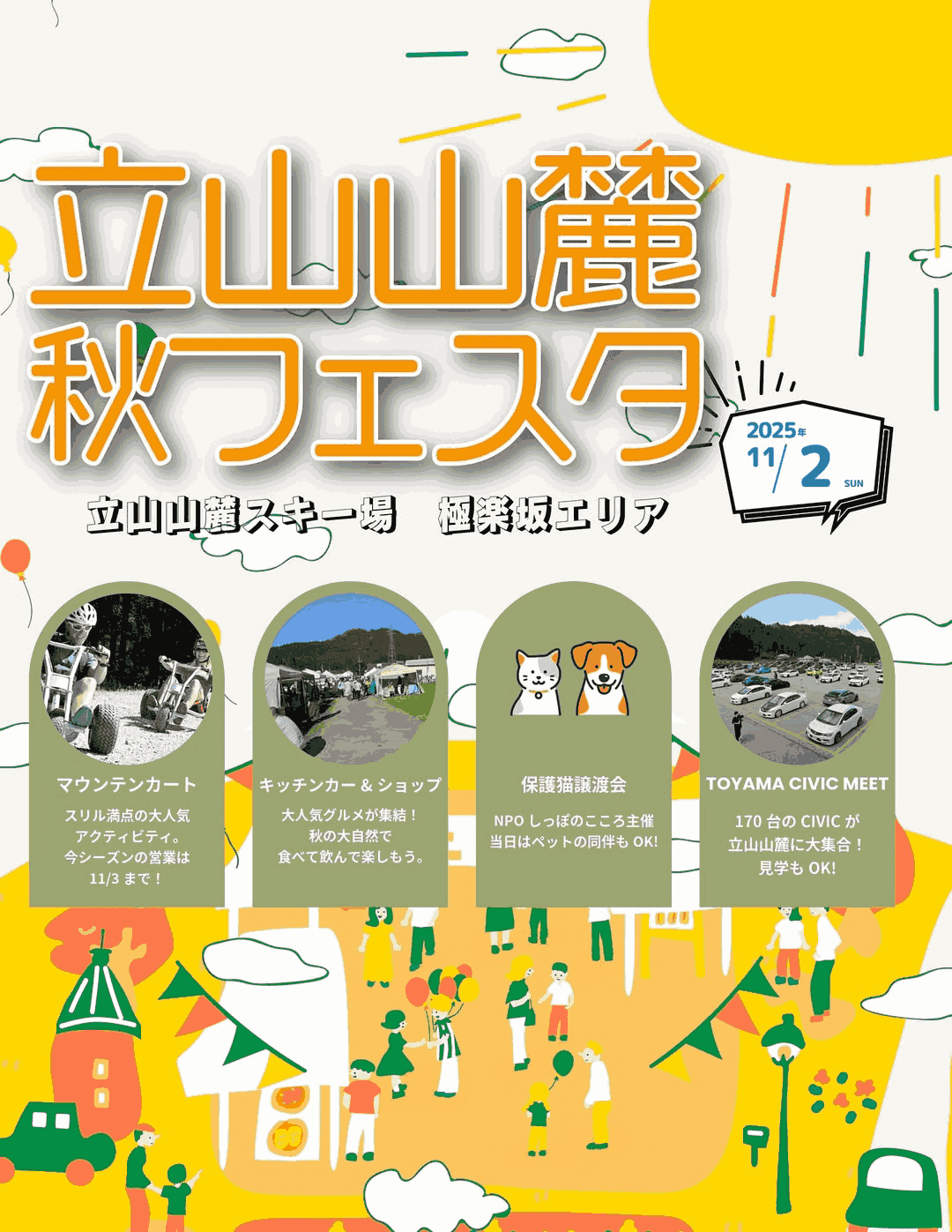 「TOYAMA CIVIC MEET」には170台のCIVICが大集合するということで、車のファンは必見です。