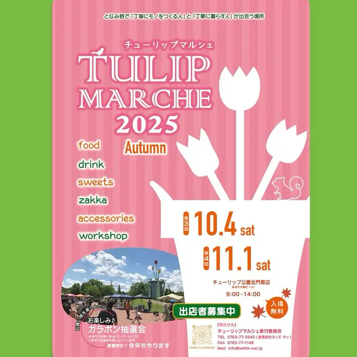 ふさふわのピンクミューリーが見ごろを迎えている砺波市のチューリップ公園。北門では4回目のマルシェが行われます。