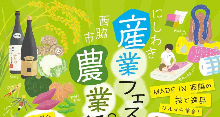 市内企業や特産品の展示、販売、飲食ブースを通じて地元の魅力が紹介される同イベント。農業祭では、巻きずしや黒田庄和牛のコロッケなどが販売され、新鮮な野菜も楽しめるほか、山田錦の日本酒販売も行われます。産業フェスタでは、播州織ファッションショーや西脇の名物料理を味わえるコーナーも設置されます。