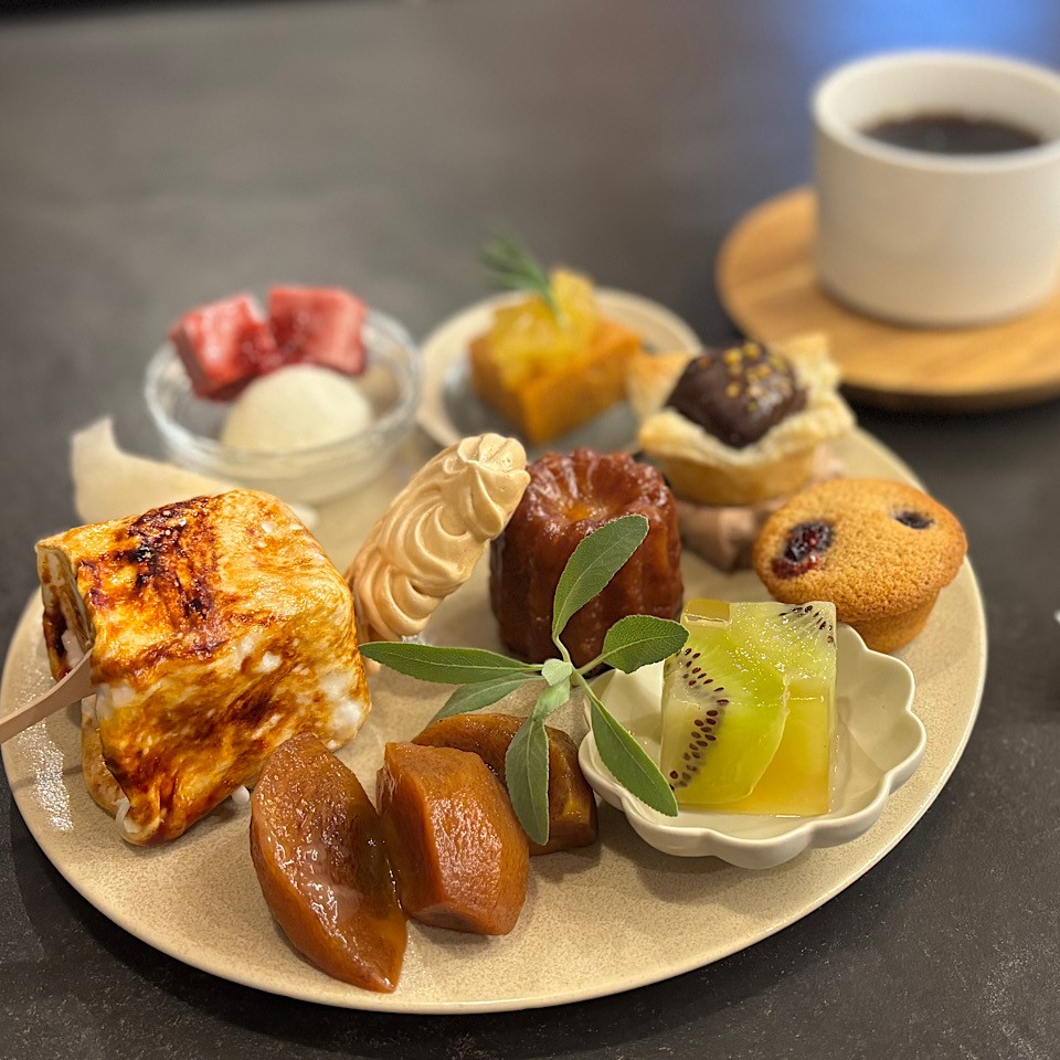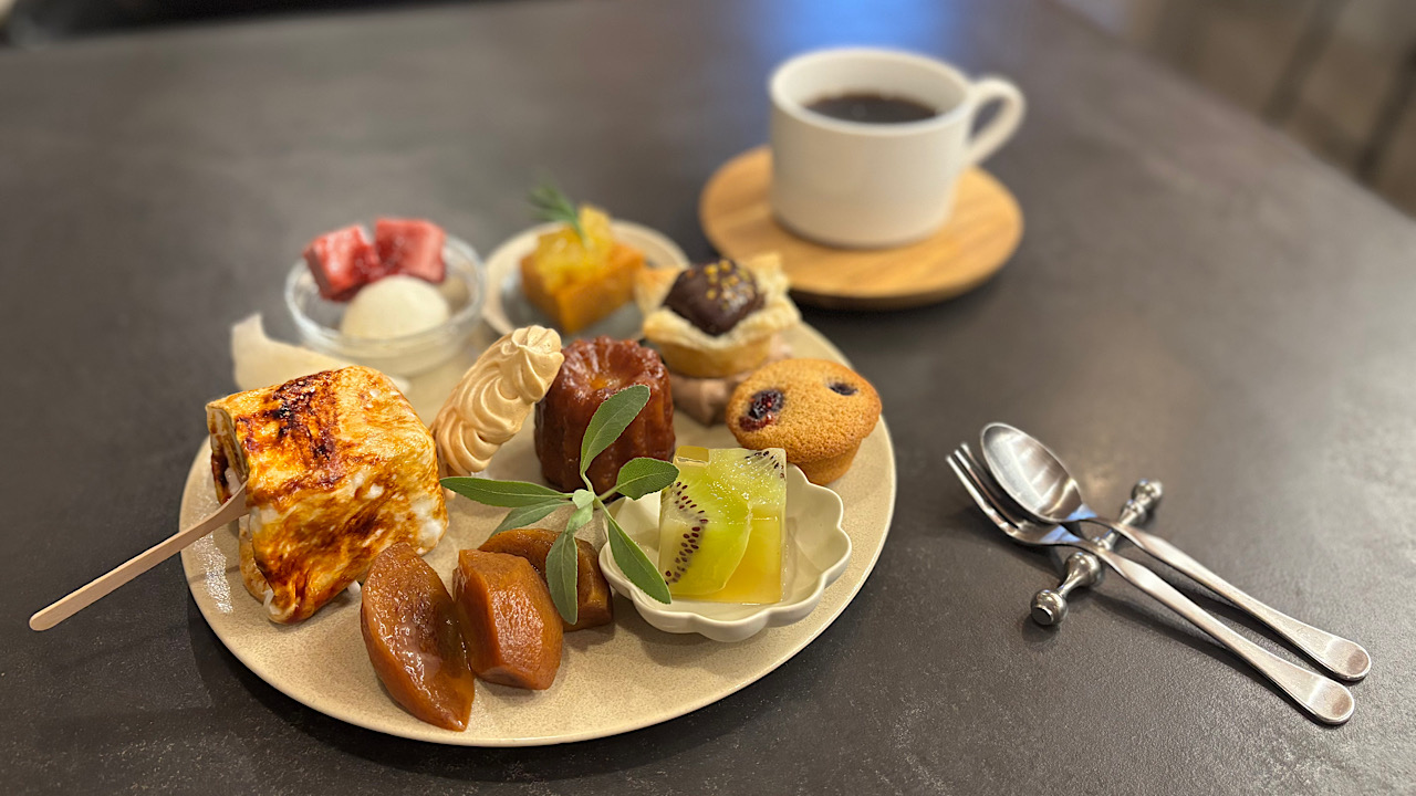 2025年11月でオープンから1周年を迎えた「KOPE CAFE」。期間限定で提供している「1st Anniversary プレート」は、さまざまな味わいと食感を楽しめるスイーツとフルーツあわせて10品がワンプレートで楽しめます。