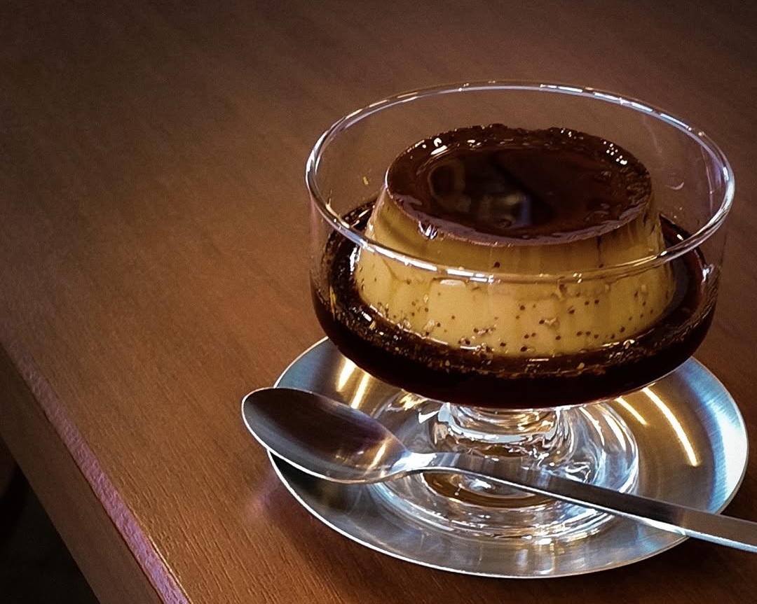 一般的なものよりも濃いめに煮詰めた自家製カラメルソースは適度に苦みが効いていて、少し大人な味わい。どこか懐かしい味わいのプリンは卵やミルクの風味がしっかり感じられ、深いコクも楽しめます。ほろ苦のカラメルソースと混ぜ合わせると一気に味の奥行きが増して、じっくりと噛みしめるうちに心がほどけていくようなカフェタイムを過ごすことができそうです。